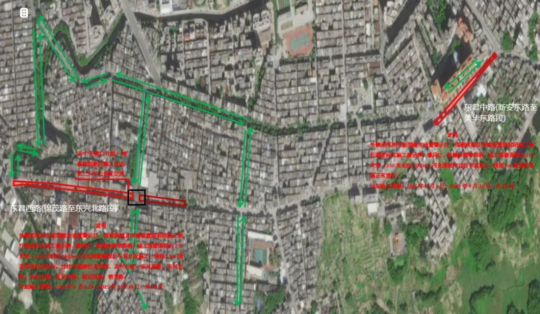 3. 东君西路(锦茂路至东兴北路段)、东君中路(新安东路老友意思华东路段)全景闭塞暗示图
