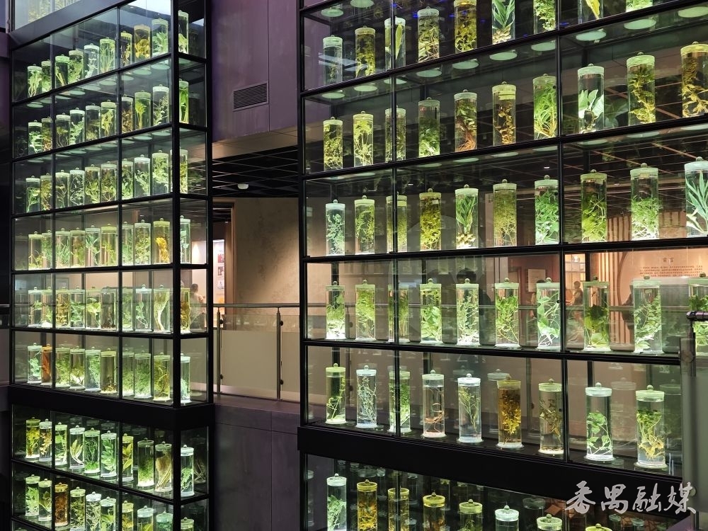 走进博物馆,数百个玻璃标本瓶组成中药水晶墙,每一瓶都装着不同的植物标本,木棉花、何首乌、千里香……这可都是入药的好材料。在植物标本墙前拍照,那些泛着浅浅绿光的中草药,把《本草纲要》的笔墨酿成了可见的好意思。