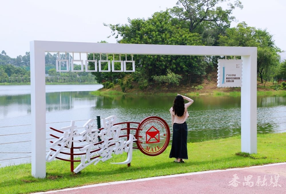 离开东谈主才广场,沿着湖畔踱步,“来番禺 正那时”明信片造型的打卡点跃然咫尺。该瞎想规复明信片细节,配有邮票、邮戳图案,“来番禺 正那时”的白色字样点缀于左下方。这里是绝佳的拍照打卡地,不错站在明信片中央,布景是优好意思的湖景,定格霎时,仿佛将番禺的此刻好意思好都塞进信封,寄给异日的我方或远处亲一又,意思盎然,典礼感满满。