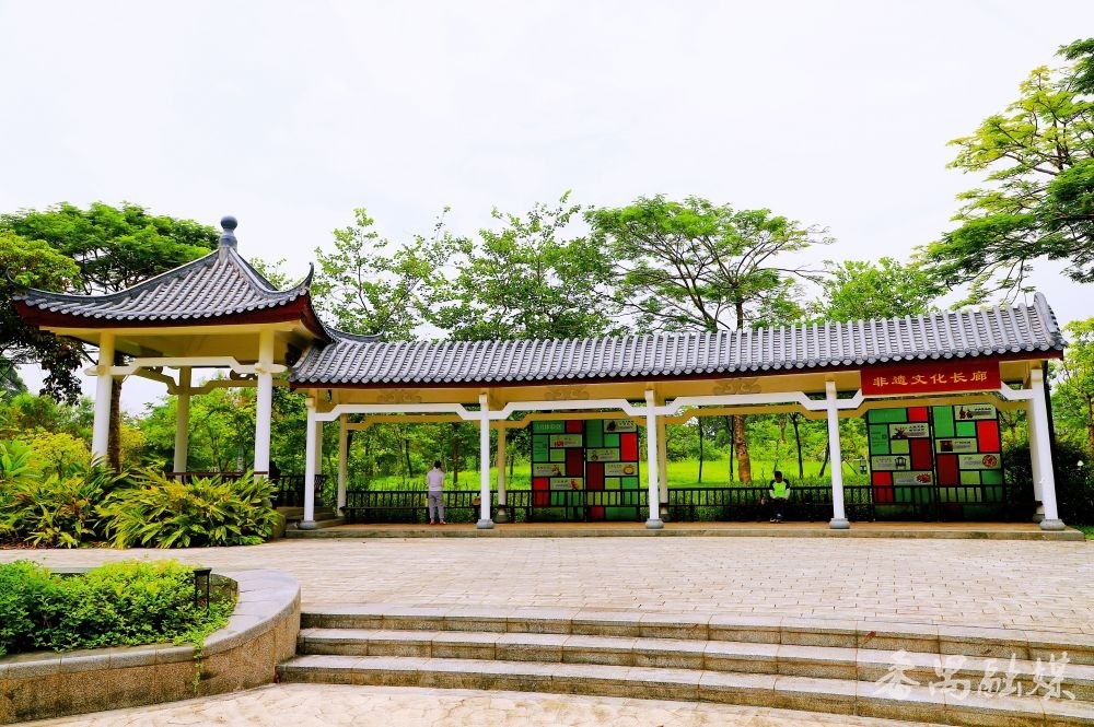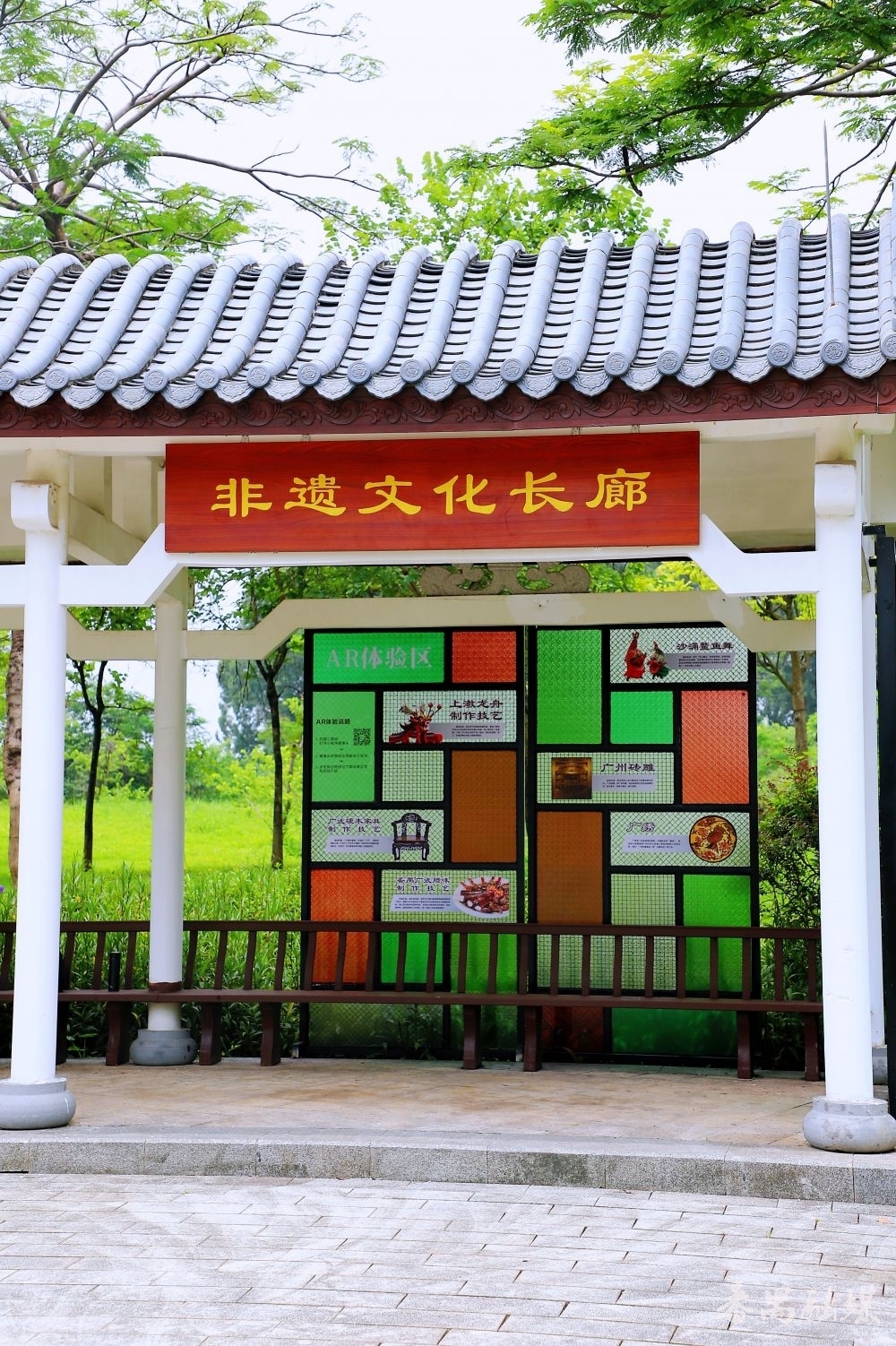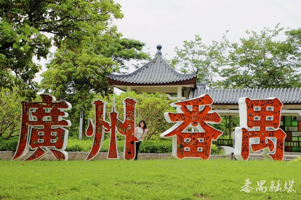 在非遗文化长廊进口,“广州番禺”四个镂空立体字静静站立,字里藏着非遗剪纸的纹理,细节之处尽显匠心。阳光穿落伍,大地投下细碎的花影,极具视觉好意思感。透过字体间隙拍摄后方景致,或站在字前留影,都能拍出富余番禺文化韵味的像片。