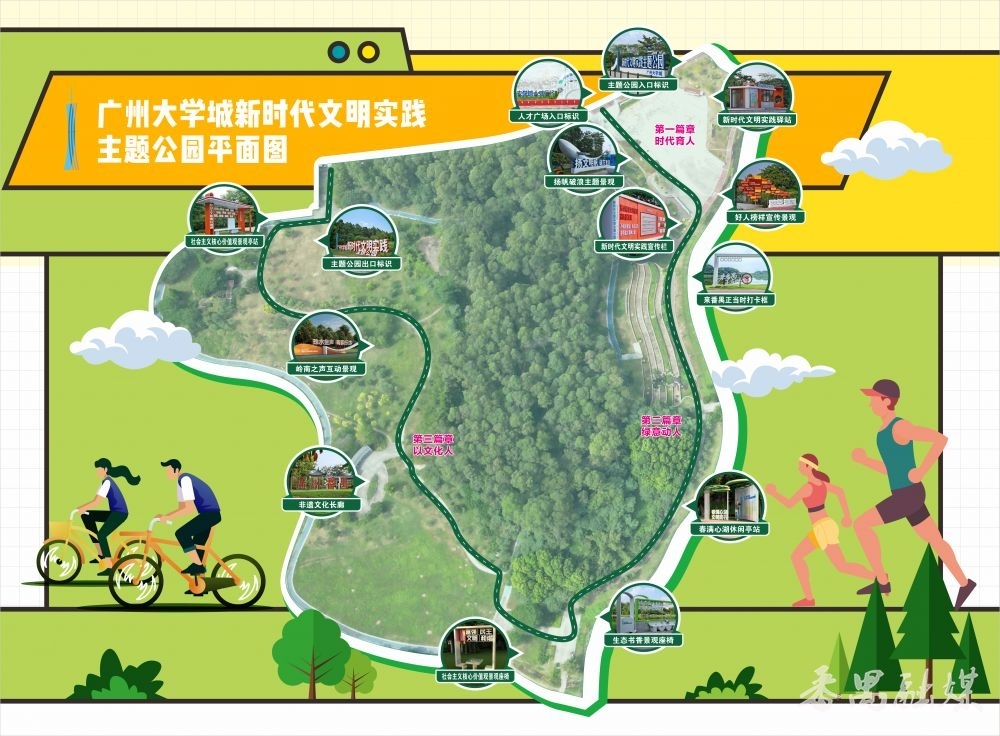 公园即课堂,一步一时髦,看成广州市首个以新期间时髦实施为中枢的主题公园,亦然环大学城时髦实施Citywalk道路的中枢区和起点,广州大学城新期间时髦实檀越题公园尽心狡计“期间育东谈主”“绿意动东谈主”“以文化东谈主”三个篇章,串联起多个富余特质的景不雅点,移步换景、层层递进,把时髦大课堂融入优好意思的当然口头,让时髦新风吹进市民大家的心坎。