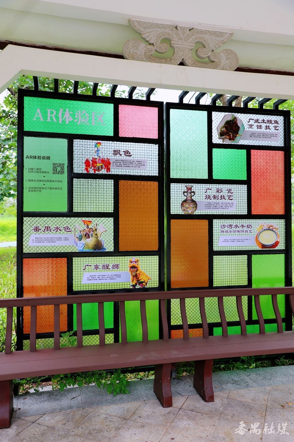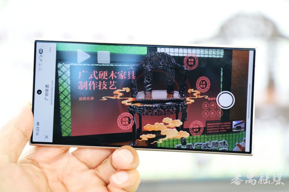 走进非遗文化长廊,满洲窗的彩色琉璃照耀着岭南特质的建筑,成为搭客歇脚的好行止。长廊里的AR体验区叫东谈主咫尺一亮,掏出手机扫码,AR期间坐窝让广绣的轮廓纹路、粤剧的华好意思衣饰等非遗跃然屏上,通过点击屏幕,还不错稽察非遗的散布早先、身手特质、传领情况等资讯,这种千里浸式、互动式的体验,让传统与科技撞了个满怀,正本非遗不错这样潮!