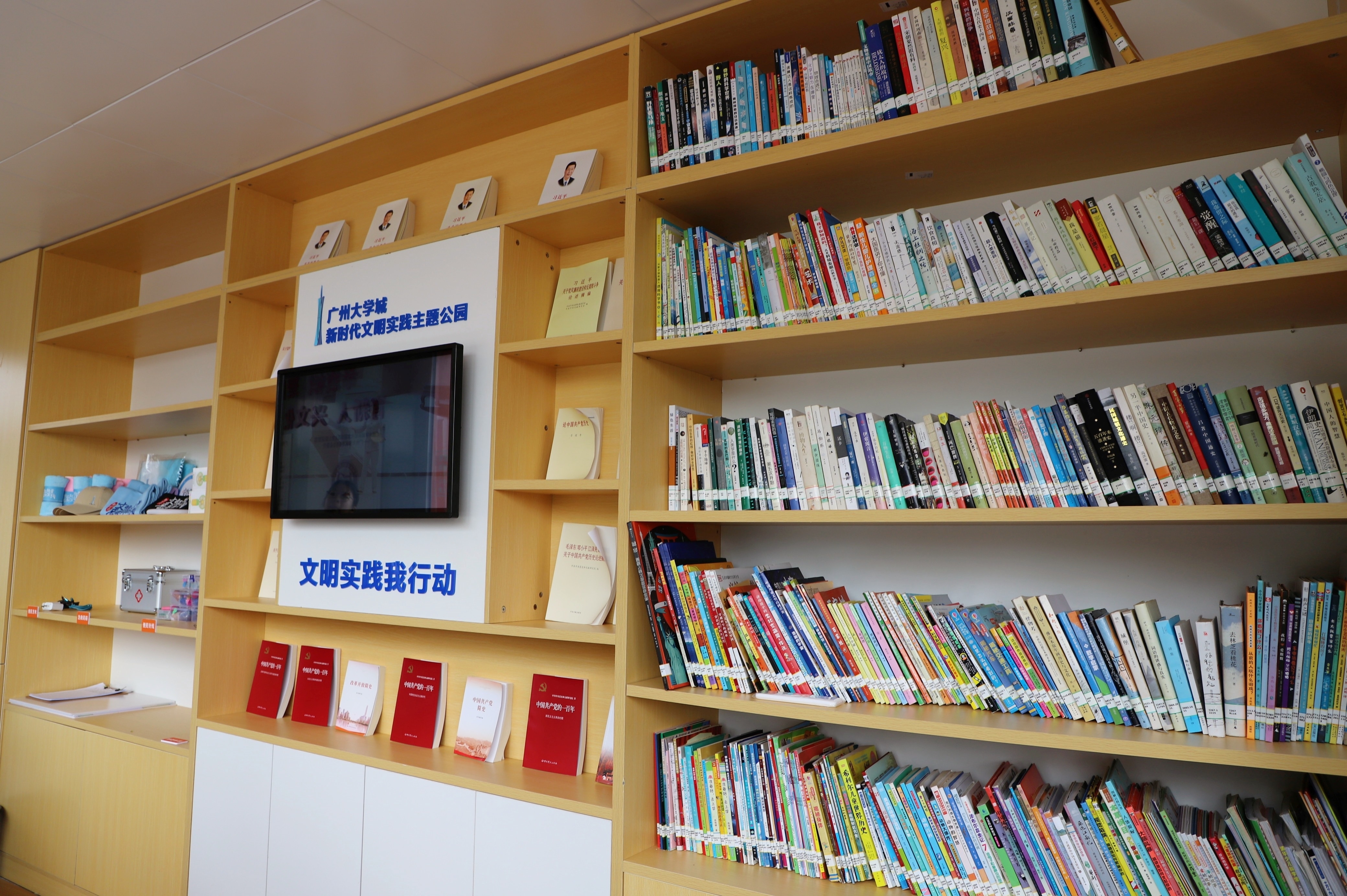 东谈主才广场中心,卷轴式的宣传栏逐渐“张开”。其间推行精选了精神时髦成就的金句,并图文并茂地展示了广州大学城12所高校的特质亮点。图文交织间,像在翻阅一册写满“行径”的教科书,字里行间都是精神时髦成就的谜底。